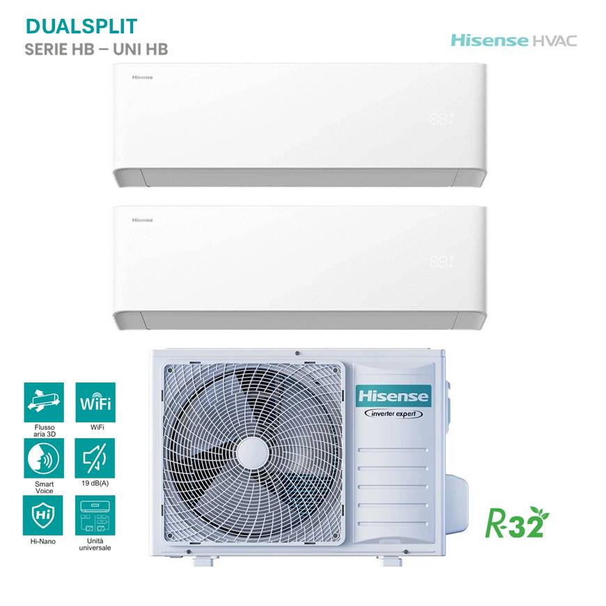 Climatizzatore Hisense Dual Split Inverter Uni HB 4.2 kW 9000+9000 BTU R32